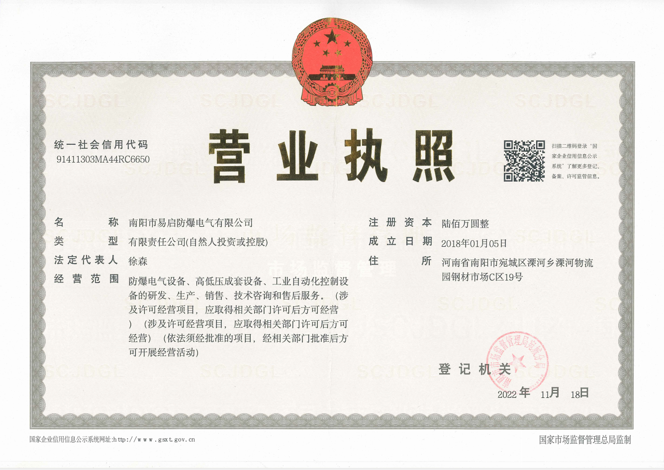Copyright ? 南陽(yáng)市易啟防爆電氣有限公司 版權(quán)所有備案號(hào):豫ICP備2023008816號(hào)-1營(yíng)業(yè)執(zhí)照